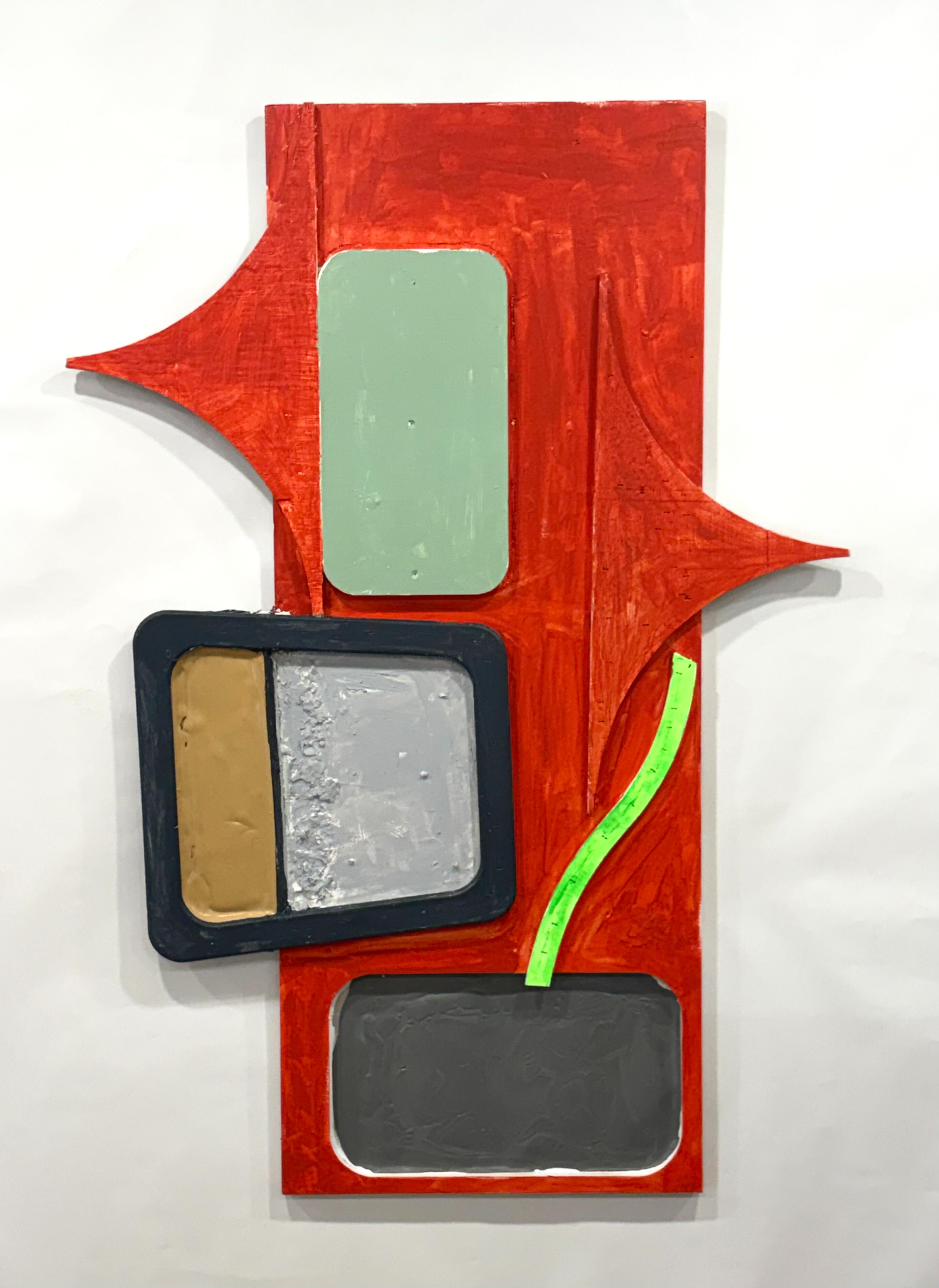 "Untitled, configuration No 3" Latex, acrylic, and metal on wood 28" x 46" x 2" 2026
